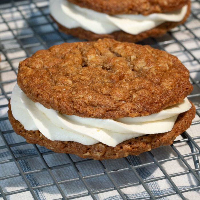 fun twist on a classic- two rich and soft oatmeal creme pies between a fluffy cookies and cream buttercream frosting