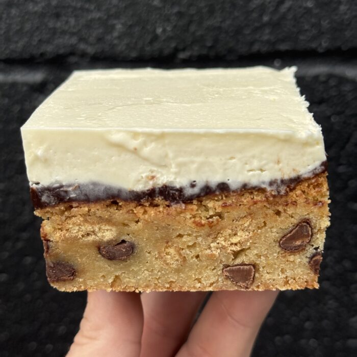 Brown butter Biscoff chocolate chip with butterscotch, topped with Cookie Butter.
