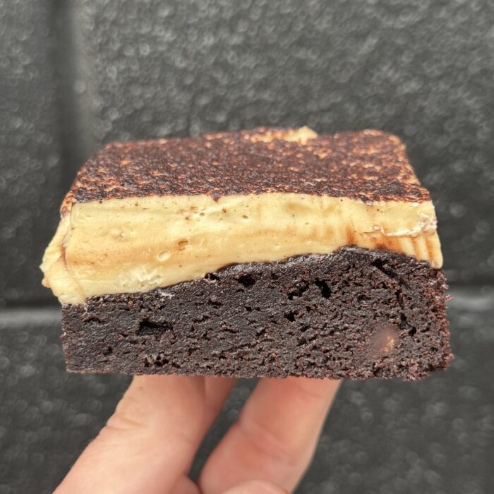 Graham cracker blondie, chocolate ganache, topped with marshmallow buttercream.