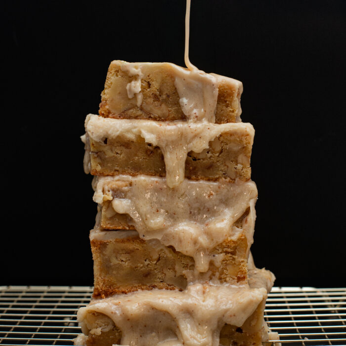 Rich and fudgy brownie base, layered with a biscoff crunch then finished with a cookie butter topping