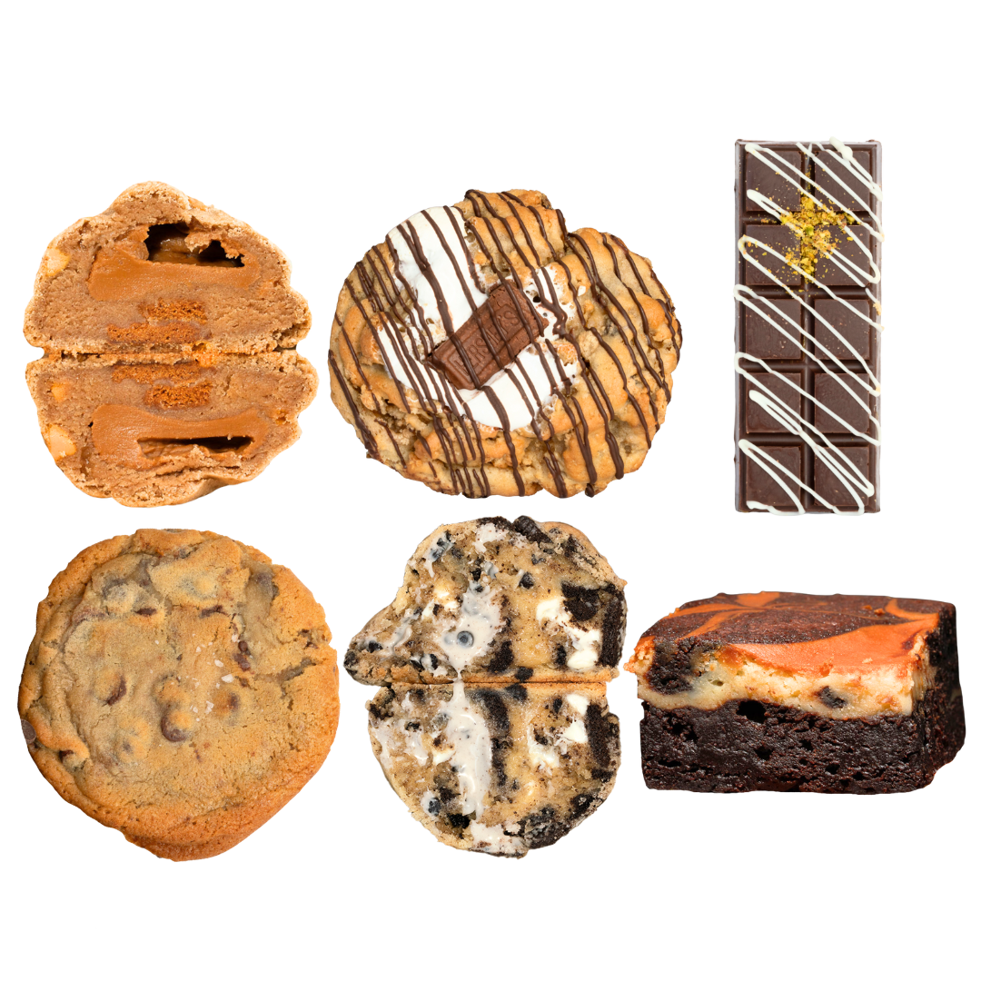 Chocolate Chip: A classic favorite with a rich, buttery base and a mix of dark, semi-sweet chocolate chips, and melting discs, finished with a touch of flaky sea salt for the perfect balance.
