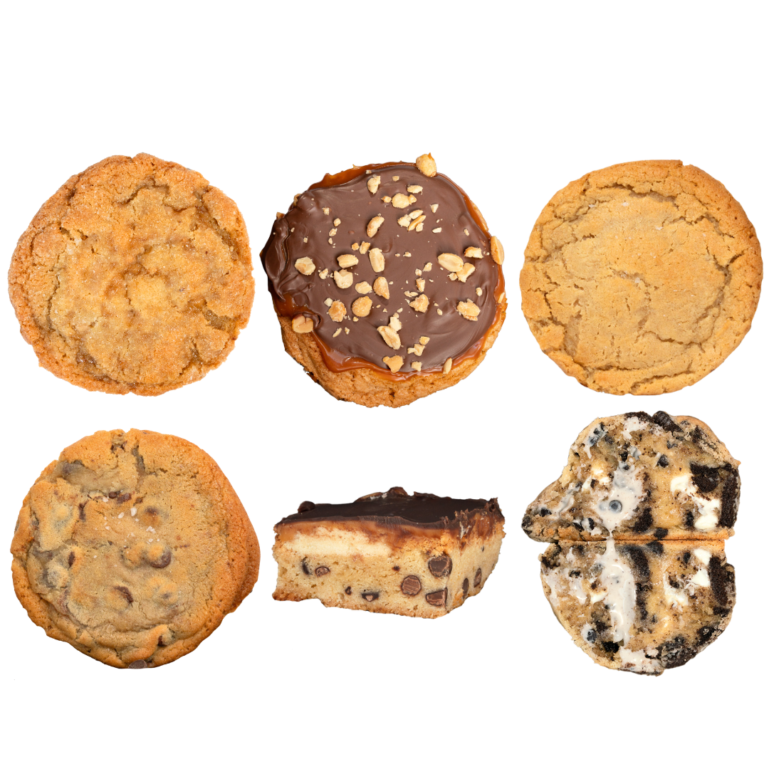 Chocolate Chip: A classic favorite with a rich, buttery base and a mix of dark, semi-sweet chocolate chips, and melting discs, finished with a touch of flaky sea salt for the perfect balance.